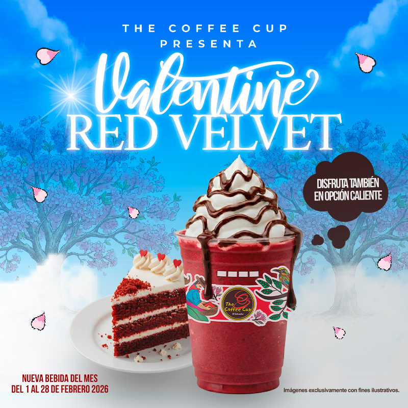 Descubre nuestro Valentine’s Red Velvet Frappe, una cremosa, irresistible y perfecta combinación de el mejor café 100% salvadoreño combinado con sirope de red velvet y un toque magnífico de salsa de chocolate para darte ese gustito que mereces. Disponible del 1 al 28 de febrero. ¡Corre por el tuyo!